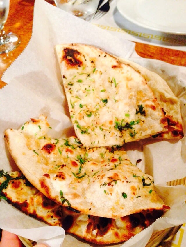 Indian style garlic bread baked on the sides of our tandoori oven.
